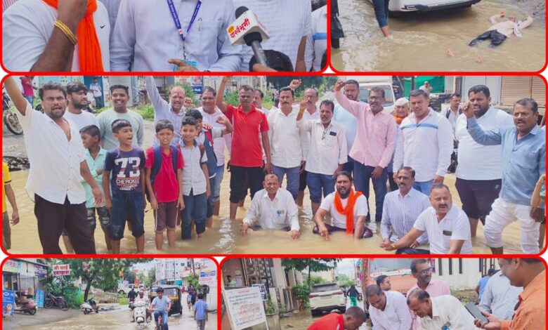 बार्शी रोडवरील धांडे नगर कमान ते रेल्वे ब्रिज या मुख्य रस्त्यावर पाणी साचल्याने संपूर्ण रस्ताच पाणथळीत बदलला आहे.पाण्यामुळे सतत होणाऱ्या त्रास आला कंटाळून आज धांडे नगर भागातील नागरिकांनी वाहत्या पाण्यात बसून आंदोलन केले.वाहतुकीसाठी अत्यंत महत्त्वाचा असलेला हा मार्ग नागरिक, विद्यार्थी,रुग्ण व वाहनधारकांसाठी मोठी डोकेदुखी ठरत आहे.